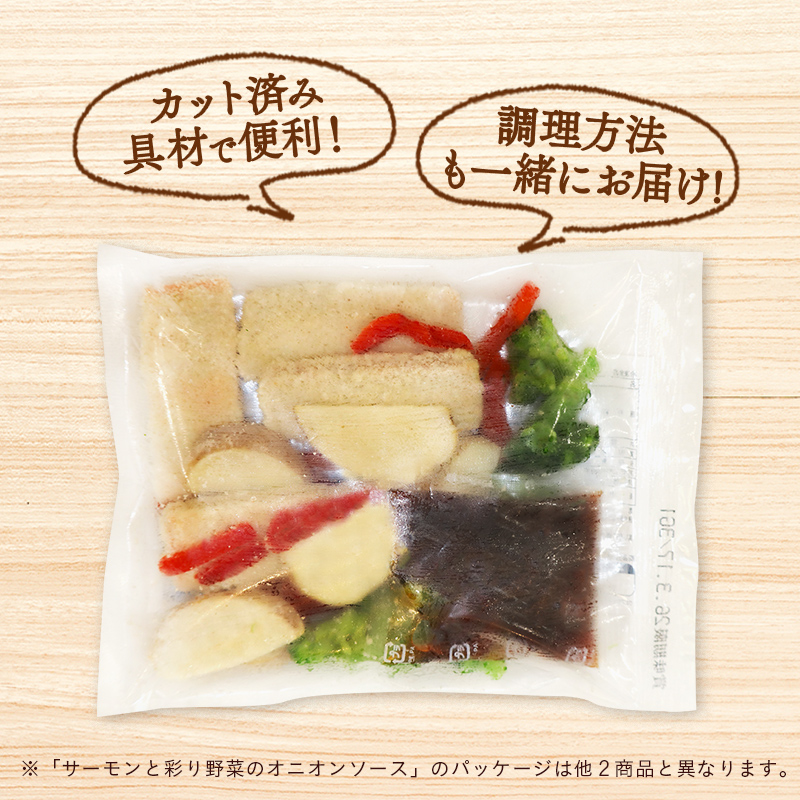 - サーモンと彩り野菜のオニオンソースセット 1袋あたり290g(具材:240g、調味料液:50g)
