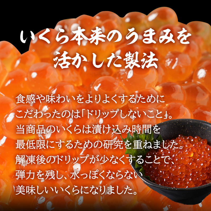 食感や味わいをよりよくするためにこだわったのはドリップしないこと。醤油漬けにする時間が長すぎると、柔らかくなりすぎてドリップしてしまいます。ニッスイのいくらは漬け込み時間を最低限にするための研究を重ね、調味液への漬け込み時間を約2時間半とどめています。