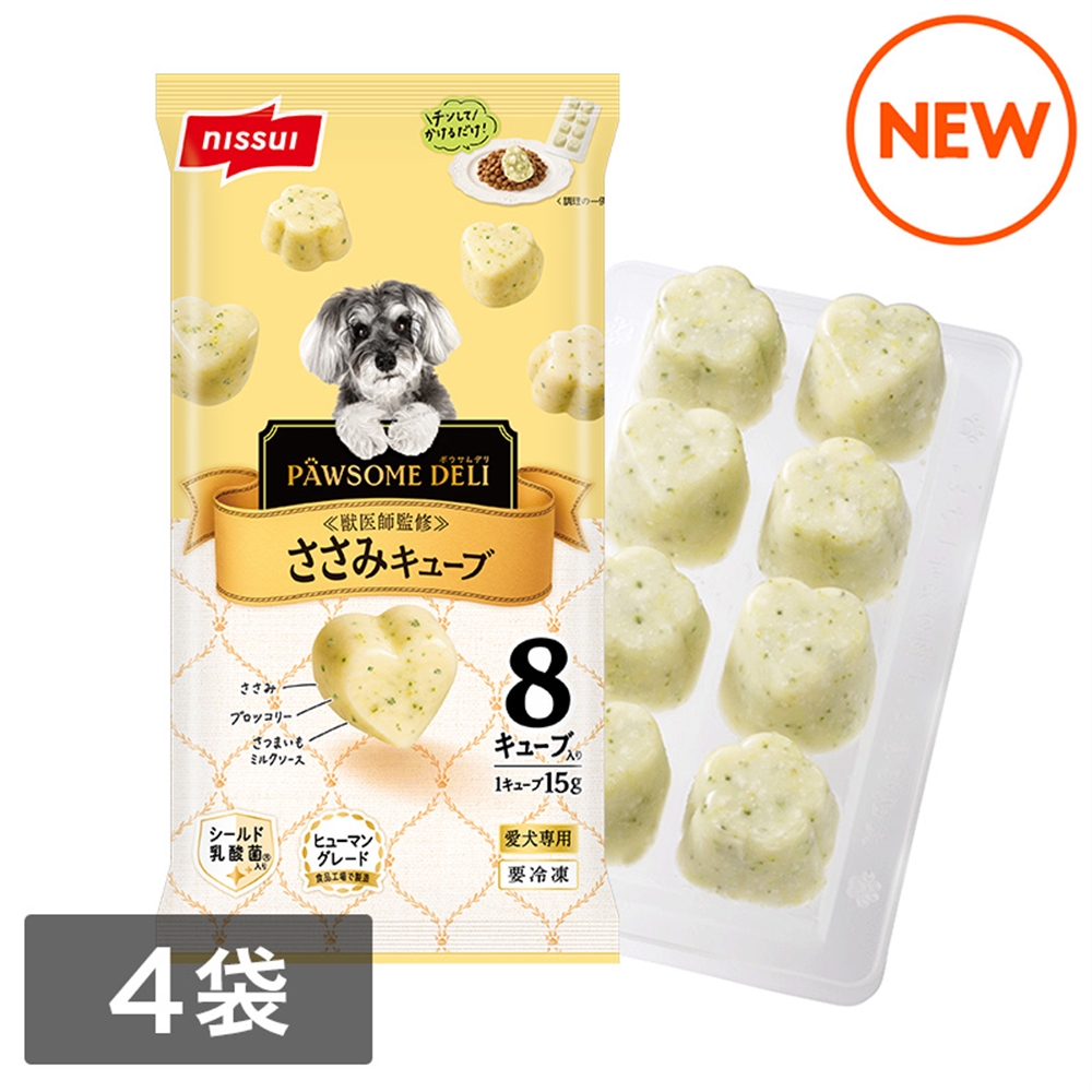 - 肉類(鶏ささみ、鶏レバーパウダー)、牛乳、さつまいも、ブロッコリー、増粘安定剤(トウモロコシ由来加工澱粉、ゼラチン)、じゃがいも、牛脂、殺菌乳酸菌乾燥粉末