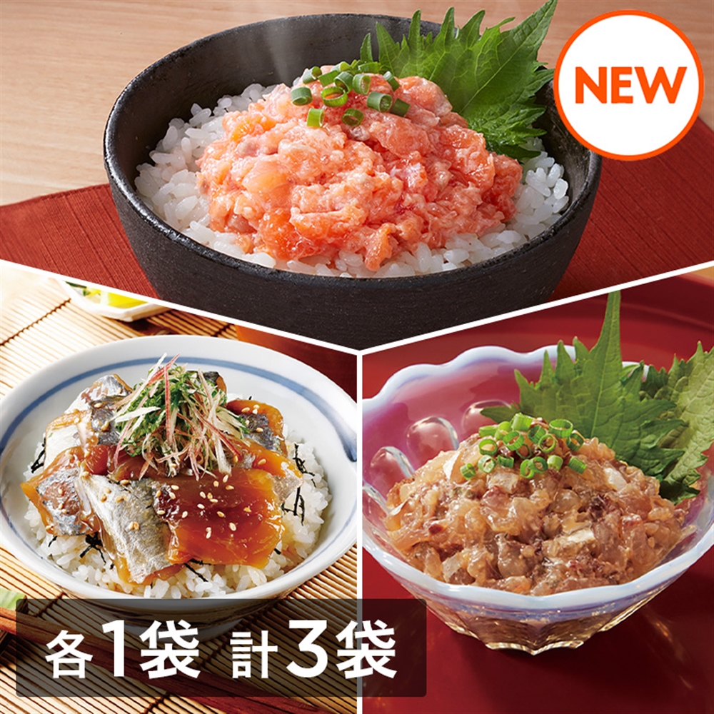 「サーモントラウト鮭とろ・あじ醤油漬け・あじたたきなめろう」