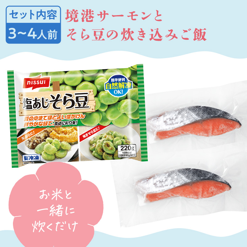 - MENU. 「境港サーモンとそら豆の炊き込みご飯」