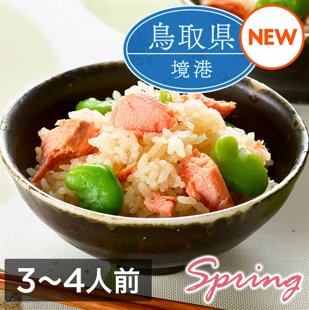 境港サーモンの素材の味を活かした、春の訪れを満喫できるそら豆入り炊き込みご飯!