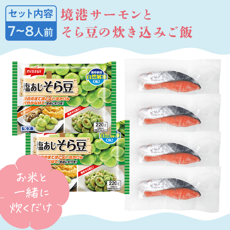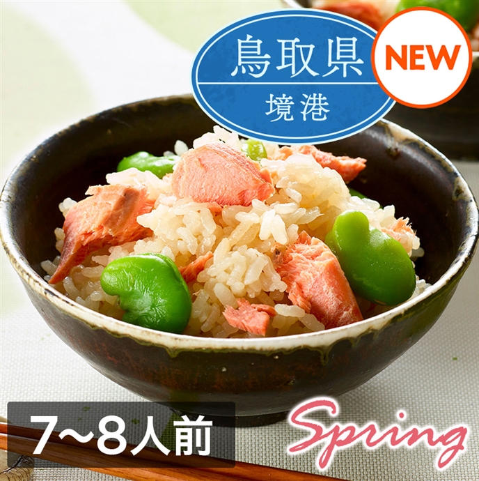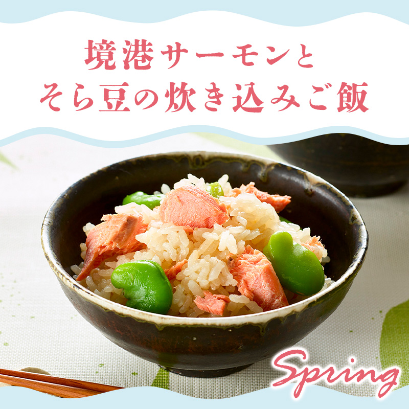 境港サーモンの素材の味を活かした、春の訪れを満喫できるそら豆入り炊き込みご飯!