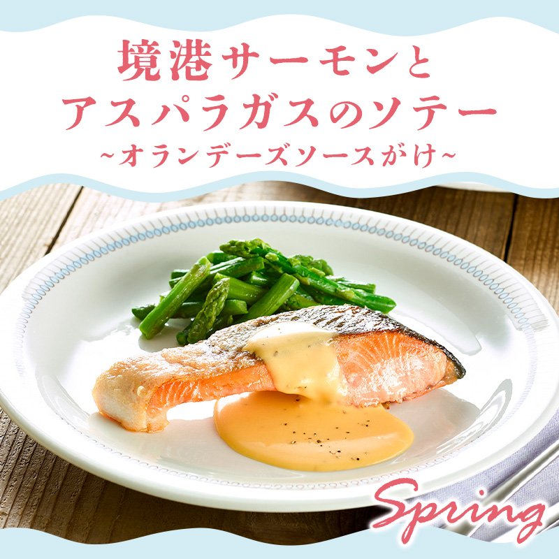 境港サーモンとアスパラガスで春の訪れを感じられる一品です。