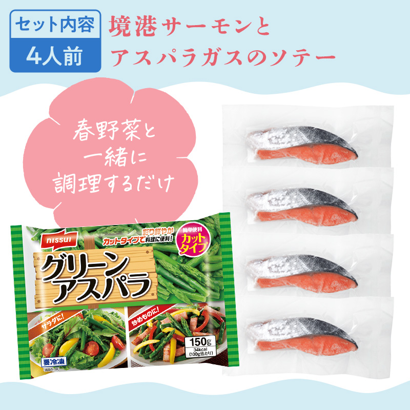 境港サーモンとアスパラガスで春の訪れを感じられる一品です。