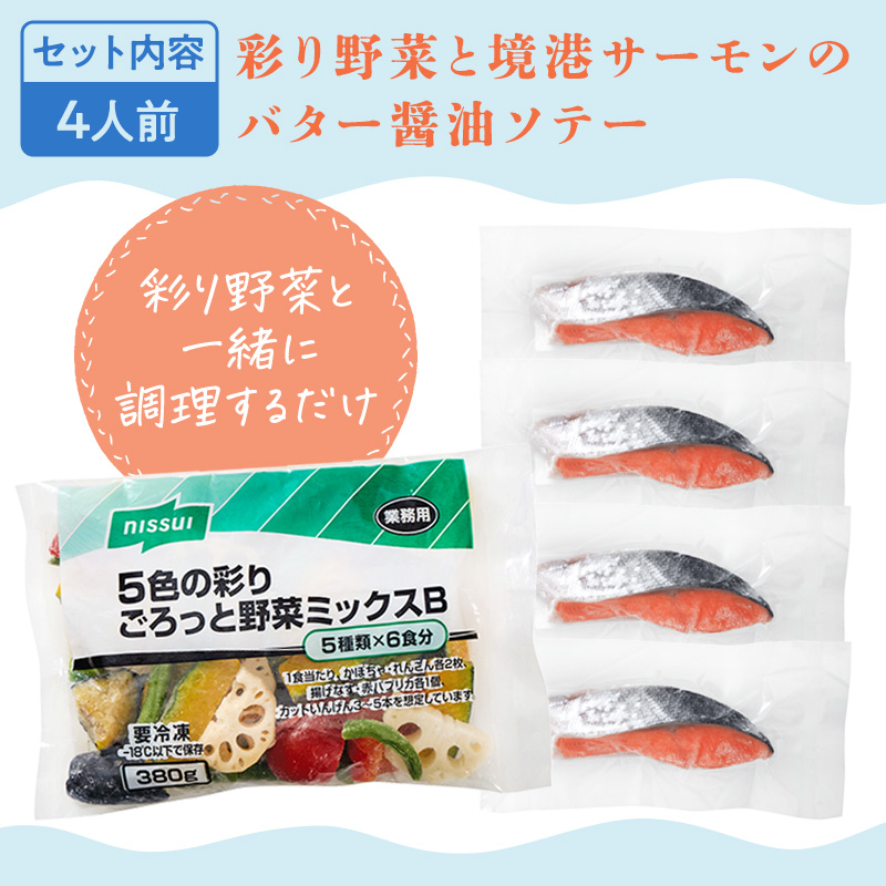- 定番MENU. 「彩り野菜と境港サーモンのバター醤油ソテー」