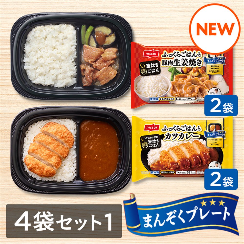 「まんぞくプレート カツカレー・豚肉生姜焼き」